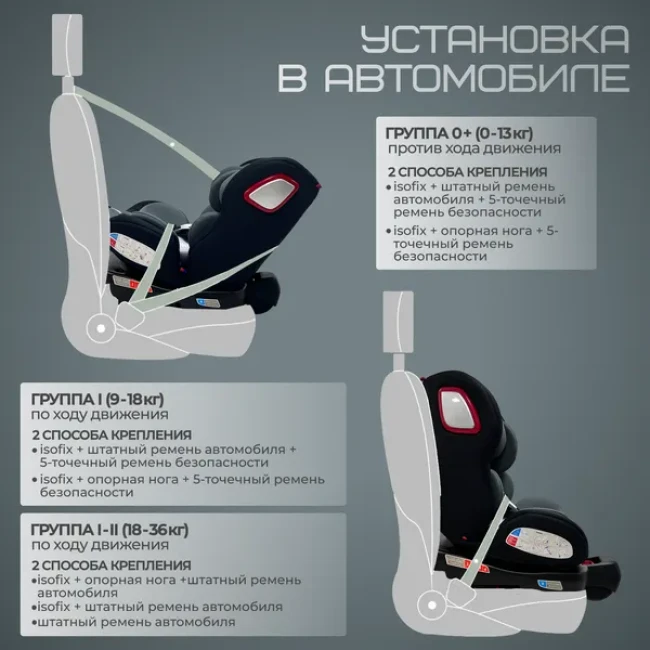 - Опорная ножка — дополнительная страховка, которая стабилизирует автокресло и предотвращает его раскачивание и опрокидывание.