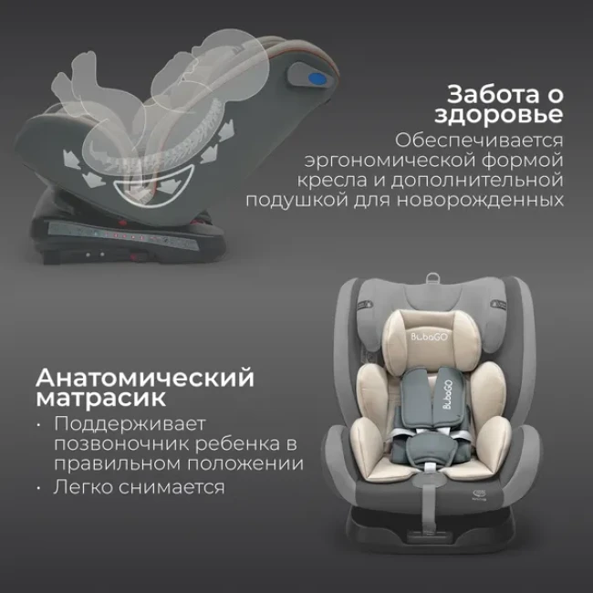 Платформа с механизмом вращения позволяет разворачивать кресло на 360 градусов, облегчая посадку и высадку ребёнка, а также делая использование кресла удобнее для родителей.