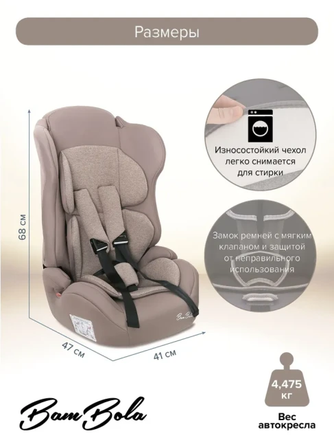 Автокресло детское BamBola Primo 9-36кг 1/2/3 KRES4305 Мокко Соты