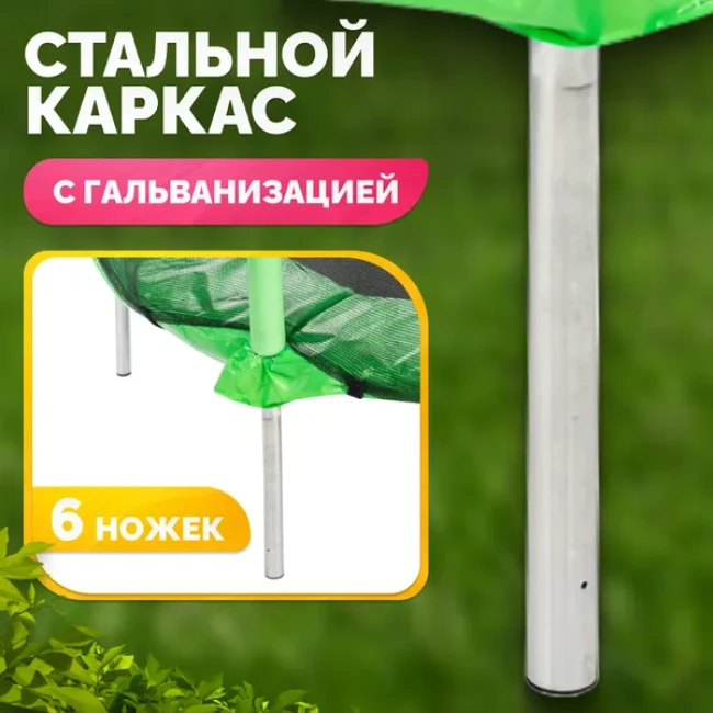 Батут Acrobat-D140 — современное решение для активного отдыха детей. Стальная рама обеспечивает устойчивость и долговечность конструкции, а зеленый цвет добавляет яркости и веселья в дизайн. Прыжковое полотно из полипропилена выдерживает нагрузку до 35 кг, что делает батут подходящим для малышей и подростков.
