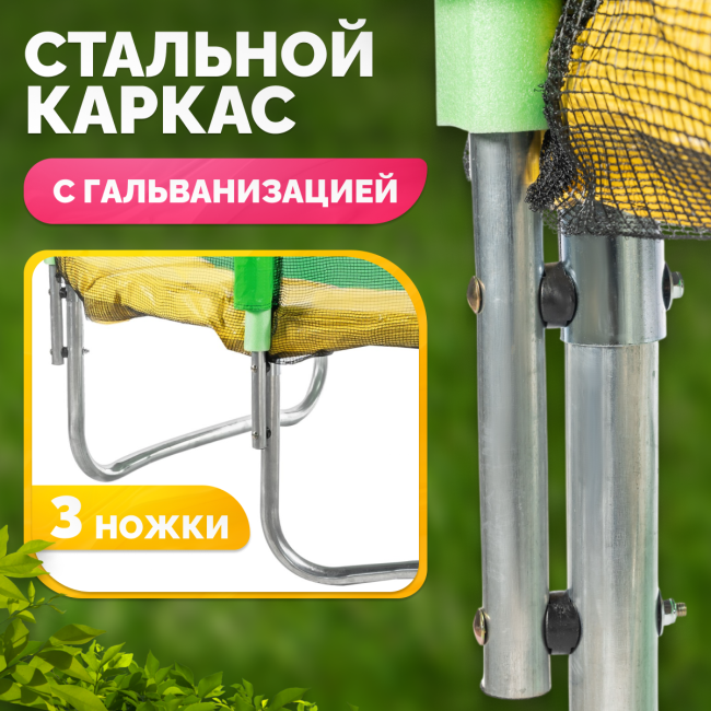 Батут с сеткой — надежное решение для активного отдыха на свежем воздухе, которое способствует не только веселью, но и безопасности. Легкость в установке и эксплуатации делают модель удобной в использовании на даче или в саду, обеспечивая безопасность и комфорт во время игр.