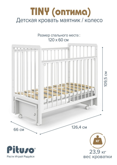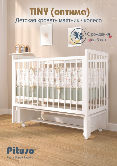 Кровать детская Pituso Tiny Оптима Маятник/колесо Белая Аляска 4680175832482