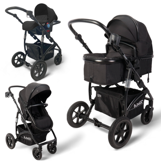 Коляска детская 3 в 1 Трансформер BubaGo Model Zoom Black Черный Черная рама BG 196-1