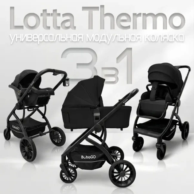 Коляска детская модульная Bubago Lotta 3 в 1 Черный BG 150-1