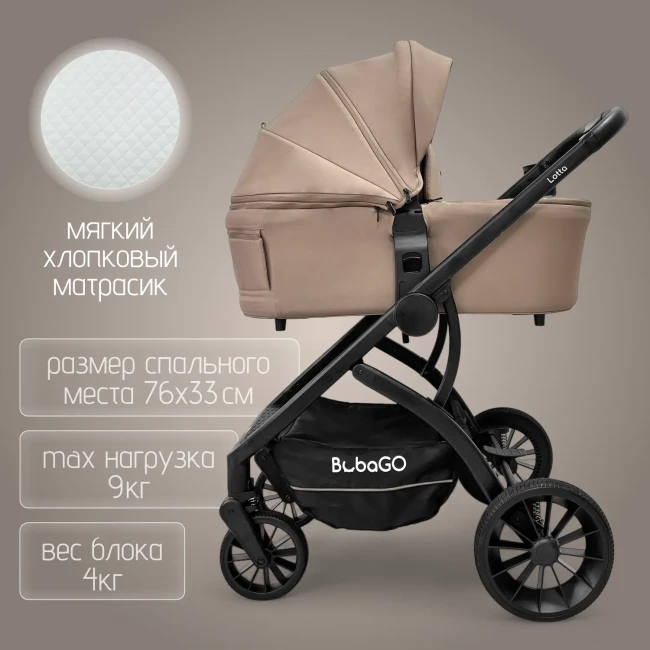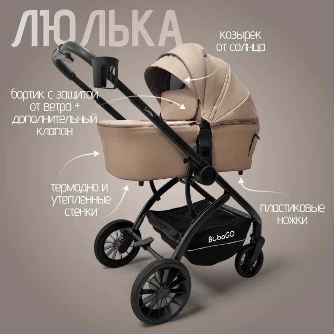 BubaGO Lotta– это модульная коляска 3 в 1, которая представляет собой оптимальный выбор для родителей, которые ценят красоту, функциональность и практичность. Коляска сочетает в себе надежность рамы, качество материалов и безопасность для ребенка. Это легкая коляска с удобным управлением и отличной проходимостью.