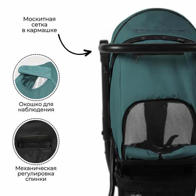 - Москитная сетка в окошке для проветривания на спинки защитит от насекомых, а смотровое окно на магните в капюшоне — для контроля за малышом.