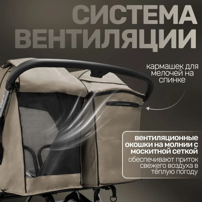 - Для холодного сезона предусмотрены утеплённые чехлы на ножки с удобной молнией по центру — быстро и просто уложить малышей даже на прогулке.