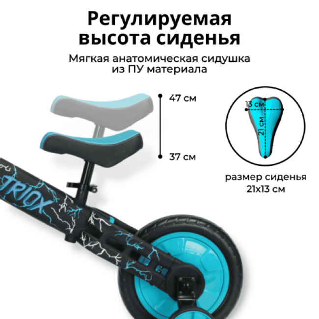 Triox — новейший беговел с уникальными особенностями, которые делают его универсальным и приспособленным к различным этапам развития вашего малыша.