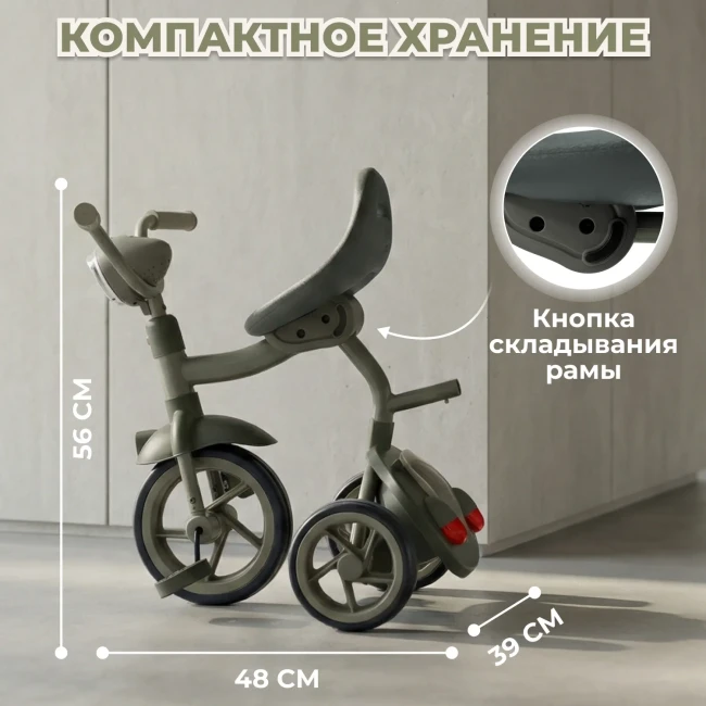 Детский трехколесный велосипед — легкий старт для первых самостоятельных прогулок.