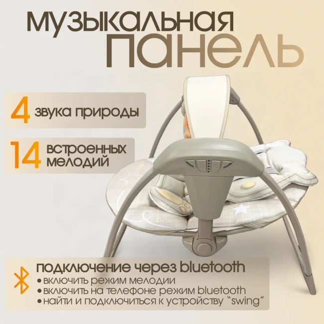 - также электрокачели можно подключить к смартфону через Bluetooth, чтобы включать любимые мелодии или спокойную музыку прямо со своего телефона.
