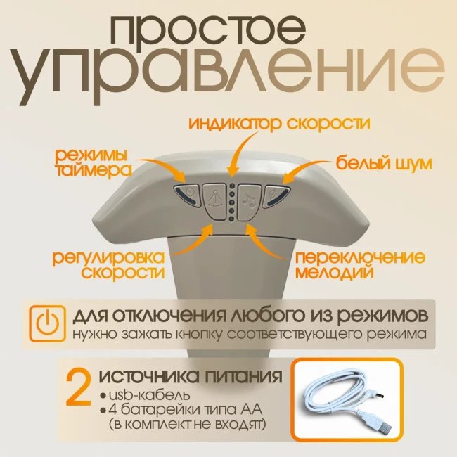- возможность отключить музыку, оставив только укачивание, или наоборот — включить звуки без движения.
