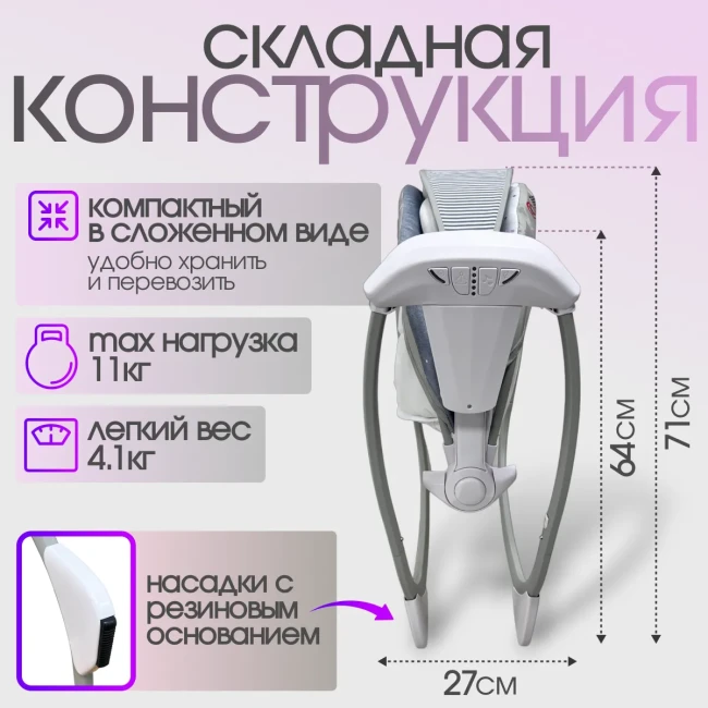 - Эта модель сочетает в себе функции нескольких устройств: шезлонга, качели и уютного места для отдыха малыша.