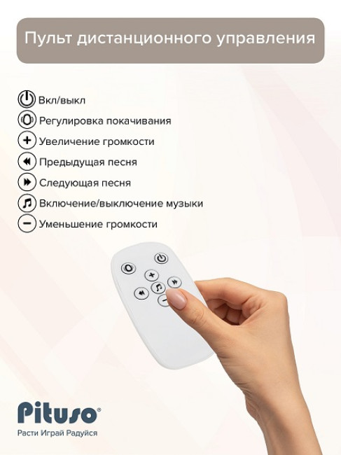 Электрокачели для новорожденных Pituso Rima — это удобное решение для спокойного времяпровождения вашего малыша. Качели представляют собой шезлонг и люльку в одном, обеспечивая комфортное укачивание для самых маленьких. Модель оснащена функцией музыкального сопровождения и различными режимами работы (3 режима).