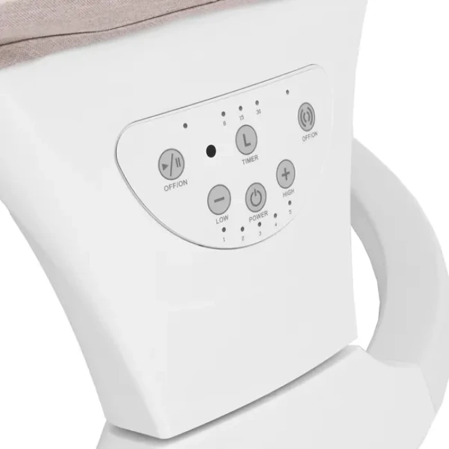 Электрокачели оснащены удобной ремневой регулировкой спинки, что позволяет выбрать наиболее удобное положения ребенка полусидя или полулежа в зависимости от возраста малыша, а также ложе легко раскладывается в горизонтальное положение.
