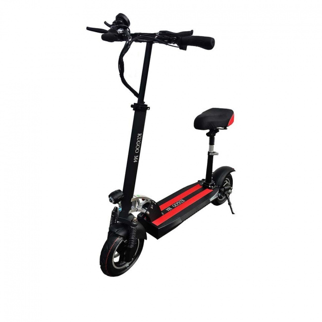 На электросамокате Kugoo M4 не страшно ездить по разбитым дорогам — пружинные амортизаторы способны сгладить любое бездорожье. Большое и надежное сиденье – несомненный плюс модели. Оно отлично подойдет людям с большими габаритами, поскольку не уступает по размерам и комфорту даже некоторым мопедам.