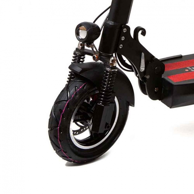 Несмотря на скромные размеры, электросамокат способен развивать скорость до 50 км/ч. Благодаря большим колесам из качественной резины может без проблем преодолевать выбоины и ямы. Пользоваться данным девайсом можно в любую погоду — узлы и блоки прочно герметизированы. Однако не рекомендовано выезжать на нем при внешней температуре выше +40 и ниже -10 градусов.