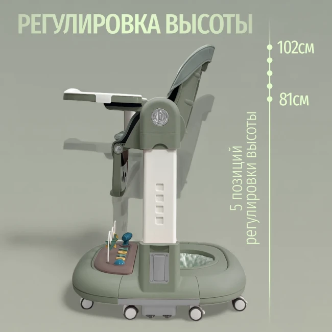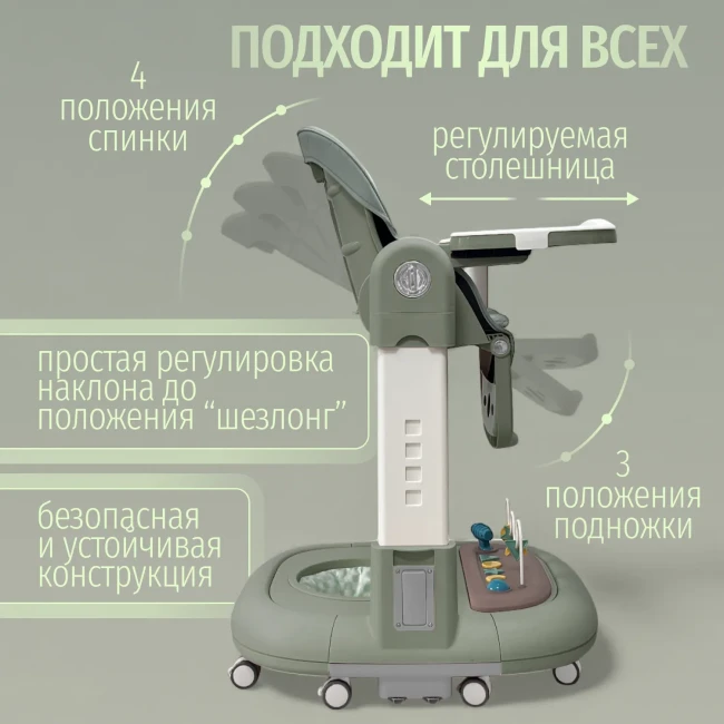 Съёмный столик и регулируемая спинка — комфорт в любом возрасте.