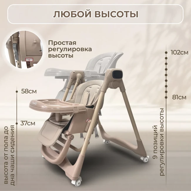 - 9 уровней регулировки по высоте — подходит под любой обеденный стол.